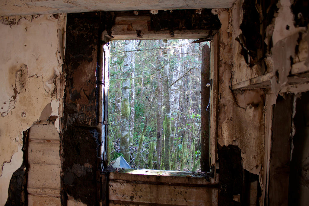 From the lower parking lot at Radar Hill, walk to the paved path and head south a short distance until you reach the trailhead to the Canso Plane Crash. The first section of the trail is very easy as the wide trail heads into the forest and quickly away from the noise of the cars along the highway. Within minutes, the trail begins to climb gradually but is still not that difficult. Within 1km, you reach an old, abandoned building. Walk up the stairs and inside the building as the graffiti, ripped walls, and dangling wires come across as very creepy. Go left inside the building, past the spray painted words saying the "Trail is this way", and exit out of the back of the building.